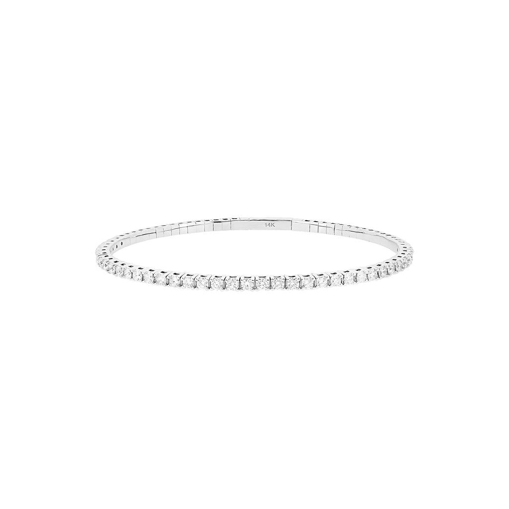 14 Karat White Gold Flexible Bangle with Diamonds